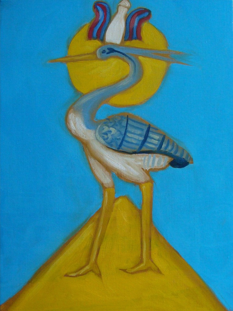 Schilderij van de Benu, de phoenix van het Oude Egypte