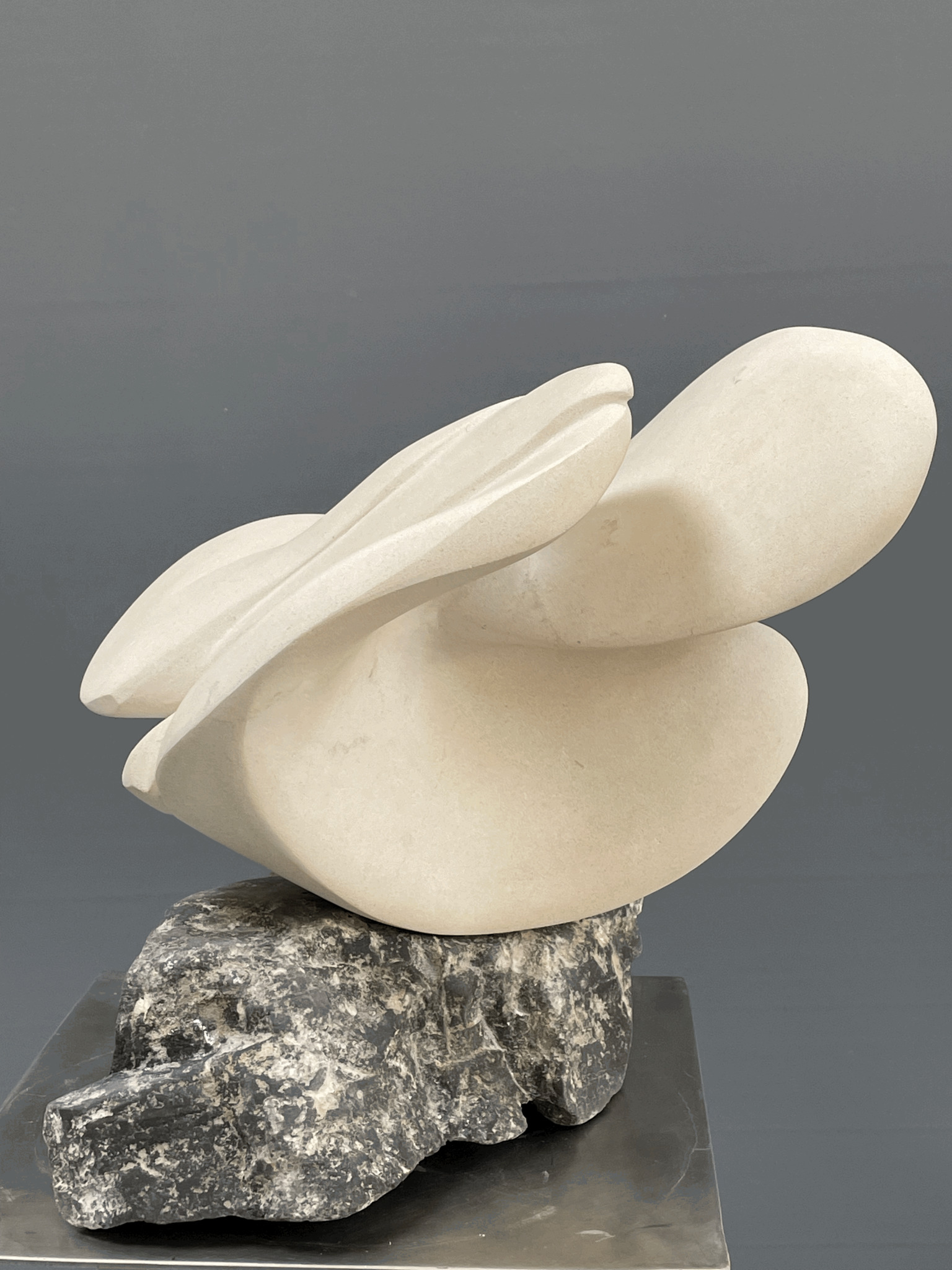 Mijn werk kenmerkt zich door een directe manier van werken. Wat mij aantrekt in steen is de hardheid die ik kan omvormen zodat er beweging en leven van de steen zichtbaar wordt.