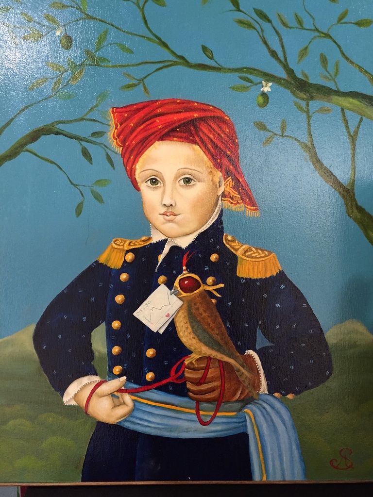 Surreel Painting Bomen Bos Boy Forest Trees Valk Boodschap Falcon Message