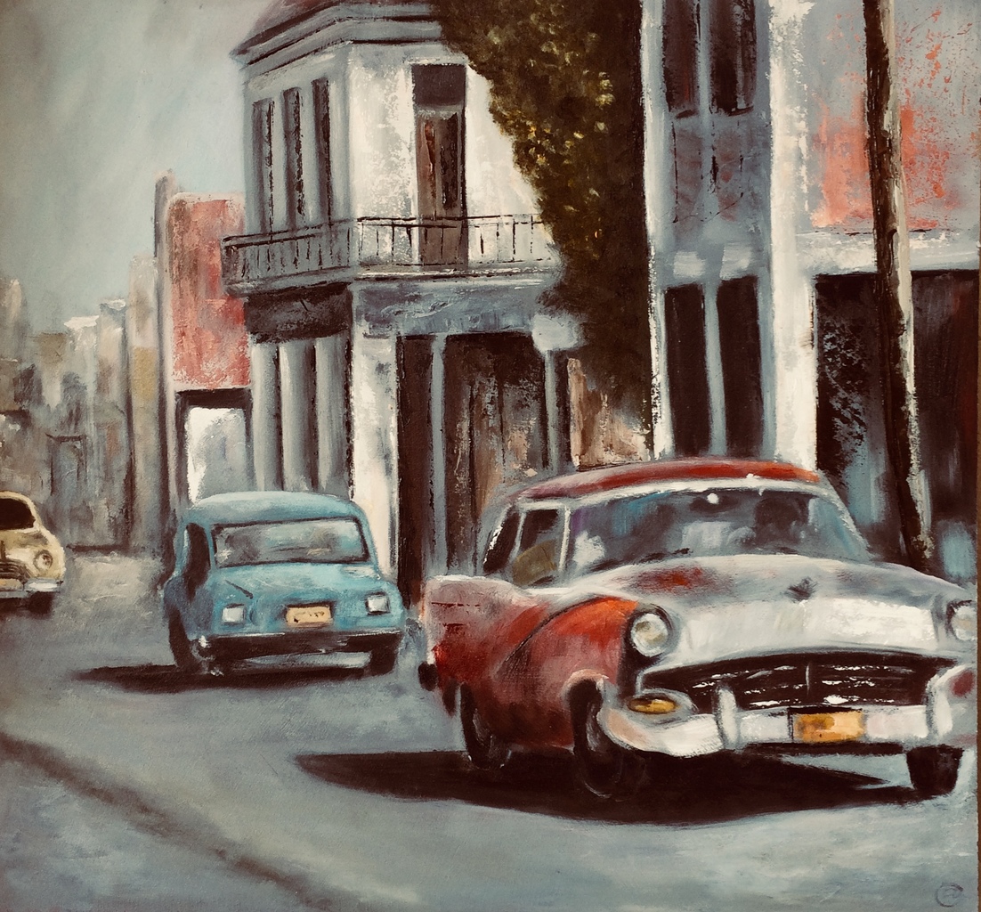 Havana Cuba Oldtimer Stadsgezicht Olieverf