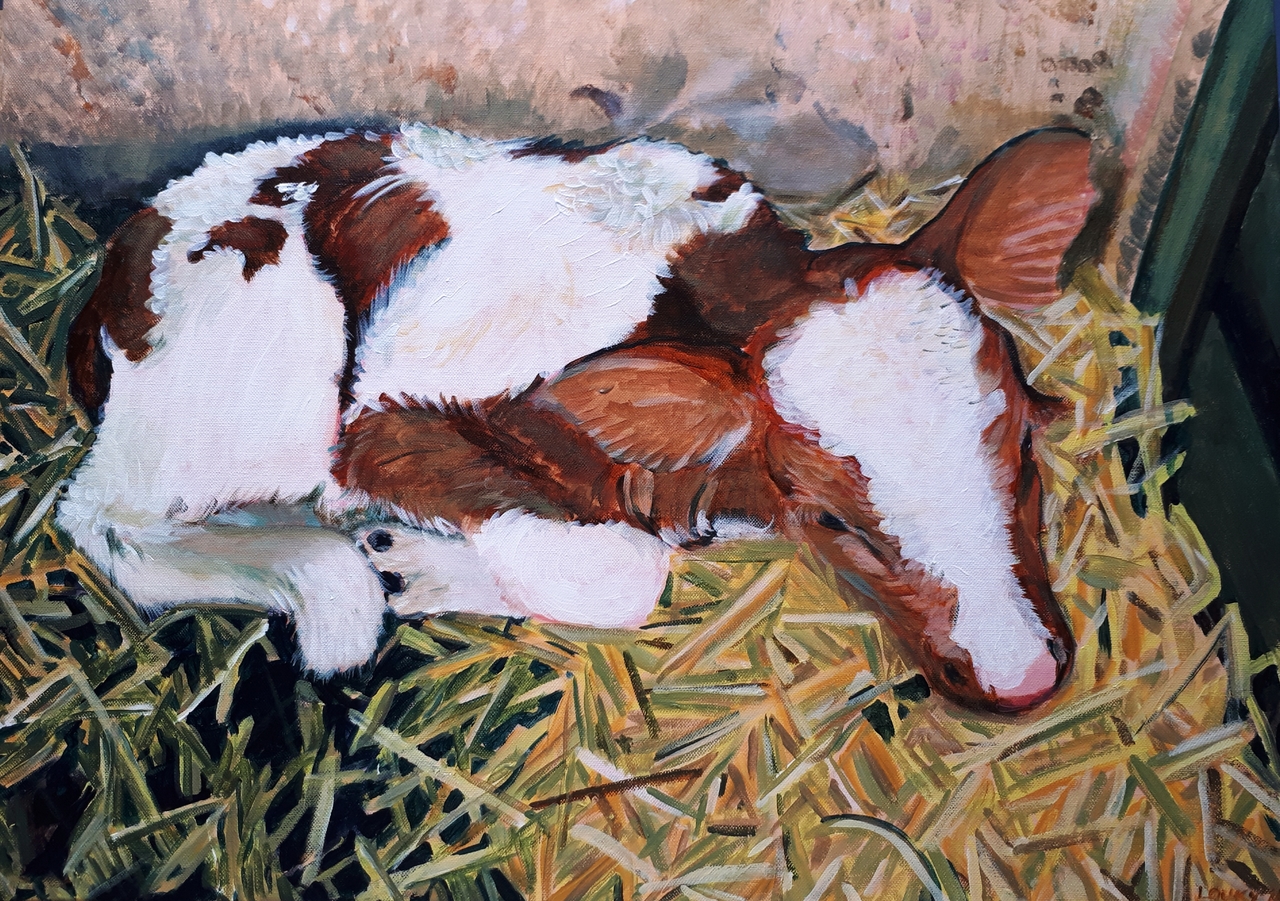 Schilderij Acryl Canvas Dier Doek Painting Kalf Calf Impressionistisch Animal Acryllic Impressionistic Scheltema Louky Loukyscheltema