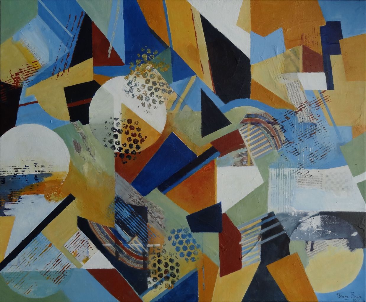 Mixed media 1, gemengde techniek, acryl en collage 50 x 60 cm