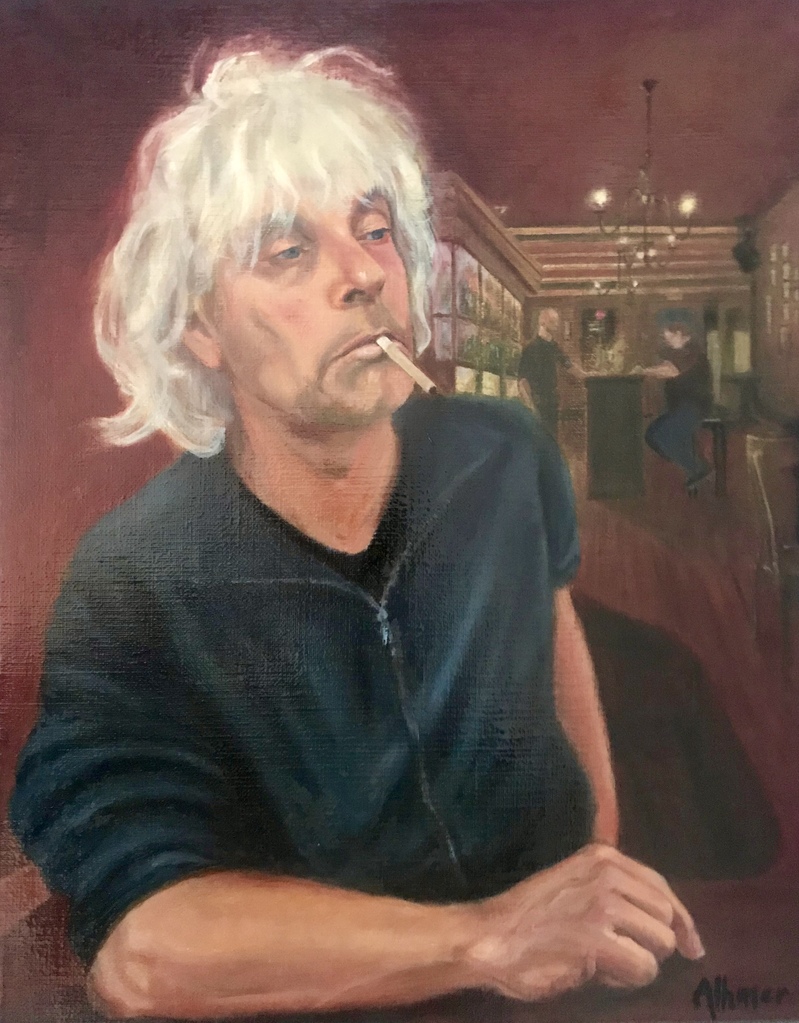 De schilder Cas Waterman in café Hesp, Amsterdam.