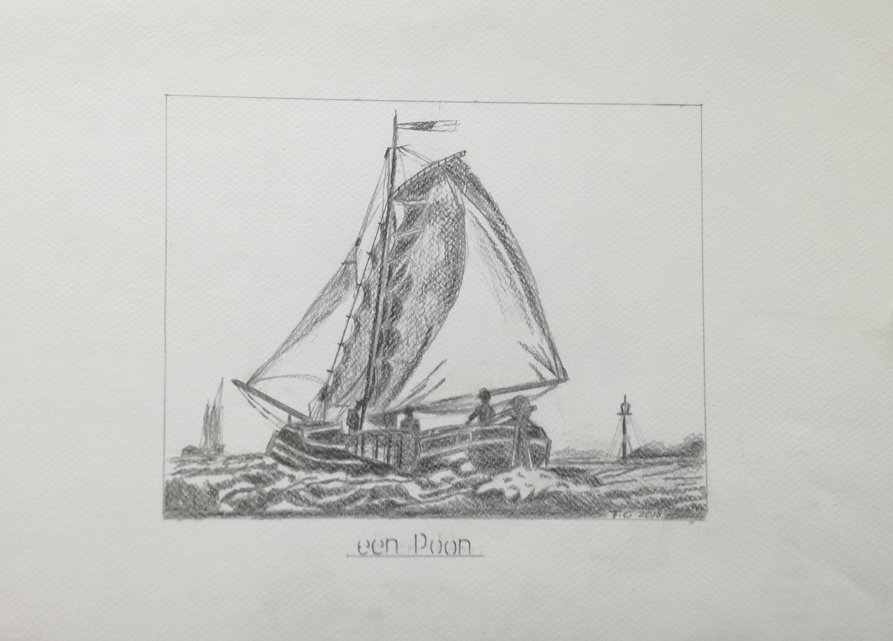 Wit Zwart Water Potlood Boot Poon Zeilboot Vrachtschepen Beurtschepen Schip Vaartuig