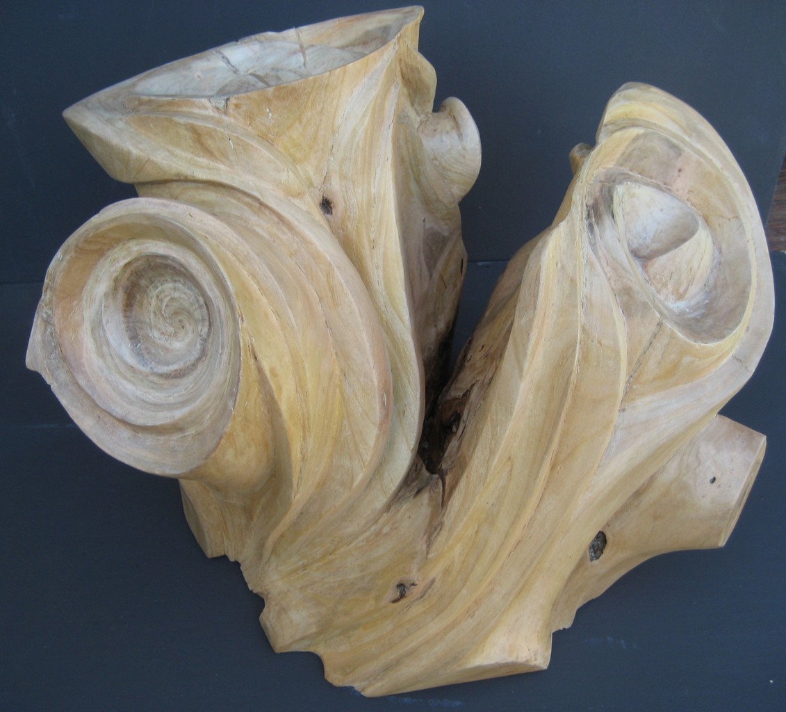 Een oud stuk kersenhout nodigde uit tot het maken van een uitbundig, levenslustig beeld.