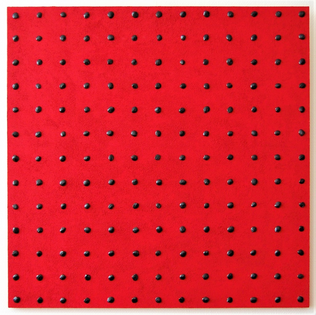 Schilderij Modern Rood Zwart Vierkant Zaden Strak Eenvoud Structuur Minimalistisch Minimalisme Sober Hedendaags Wandobject Natuurlijk Modernisme 80x80cm 850euro