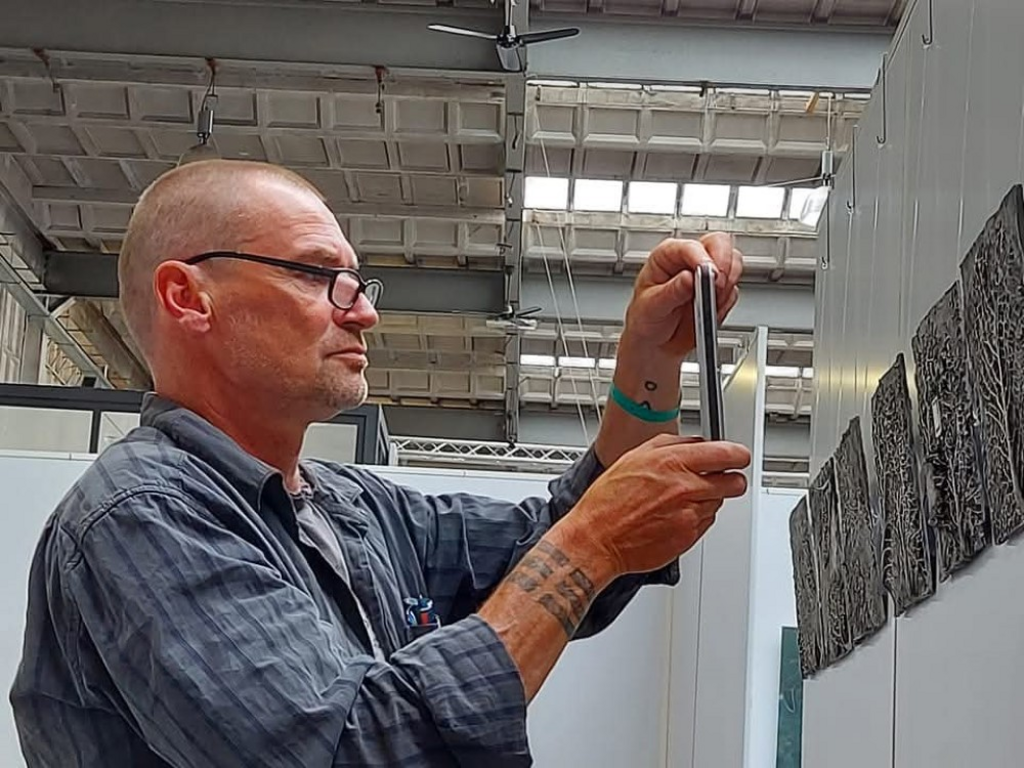 Peter werkt met gerecyclede printplaten ze vertegenwoordigen voor hem de huidige technologische groei en digitale wereld. Zijn werk laat de systemen zien waar we steeds meer van afhankelijk worden.