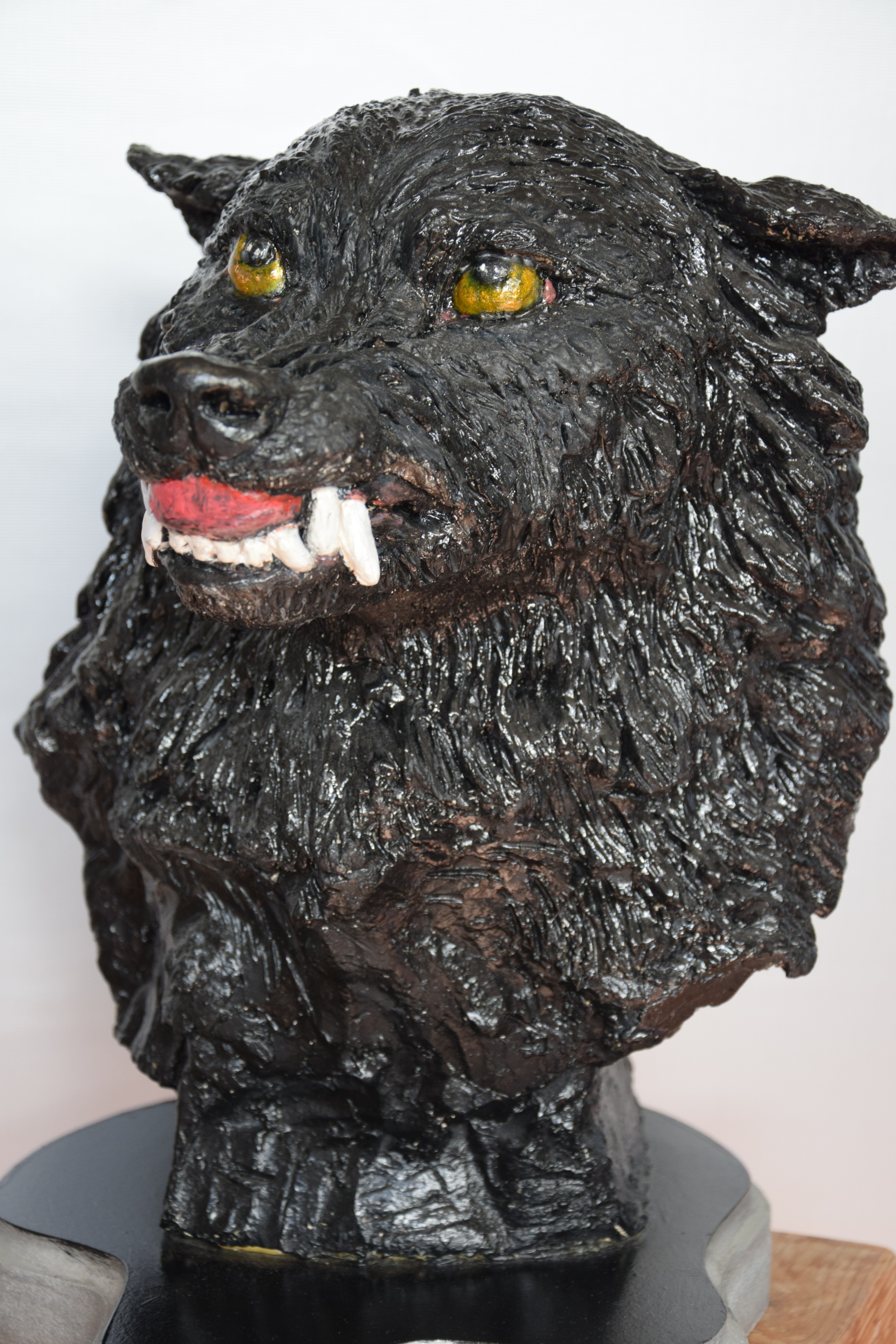 Zwarte Wolf. Borstbeeld van keramiek