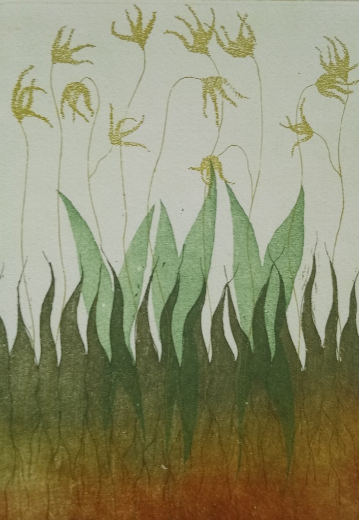 De prent bestaat uit 3 over elkaar afgedrukte platen in zelf gemengde aardtinten inkt. Iedere prent is uniek en in diverse kleuren verkrijgbaar.