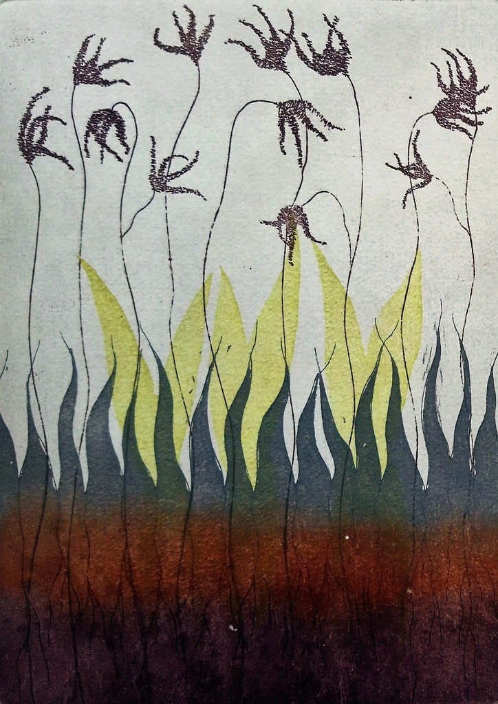 De prent bestaat uit 3 over elkaar afgedrukte platen in zelfgemengde aardtinten. Iedere prent is uniek en in diverse kleuren verkrijgbaar
