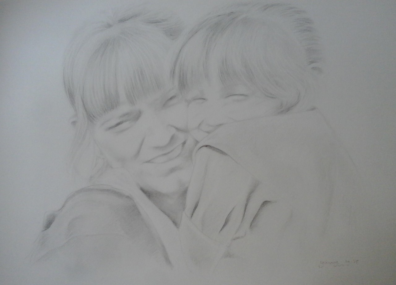 Moeder en dochter, oude foto, portret op A3, 2015
