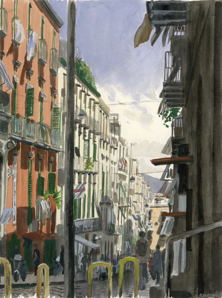Schilderij Licht Aquarel Painting Light Realisme Realism Watercolor Stad Italie City Perspectief Italië Watercolour Italy Perspective Napels Napoli Naples