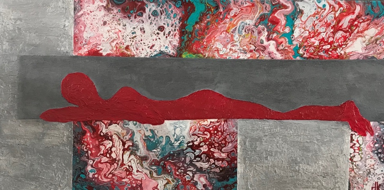 Rood Blauw Vrouw Structuur Persoon Liggen Pouring