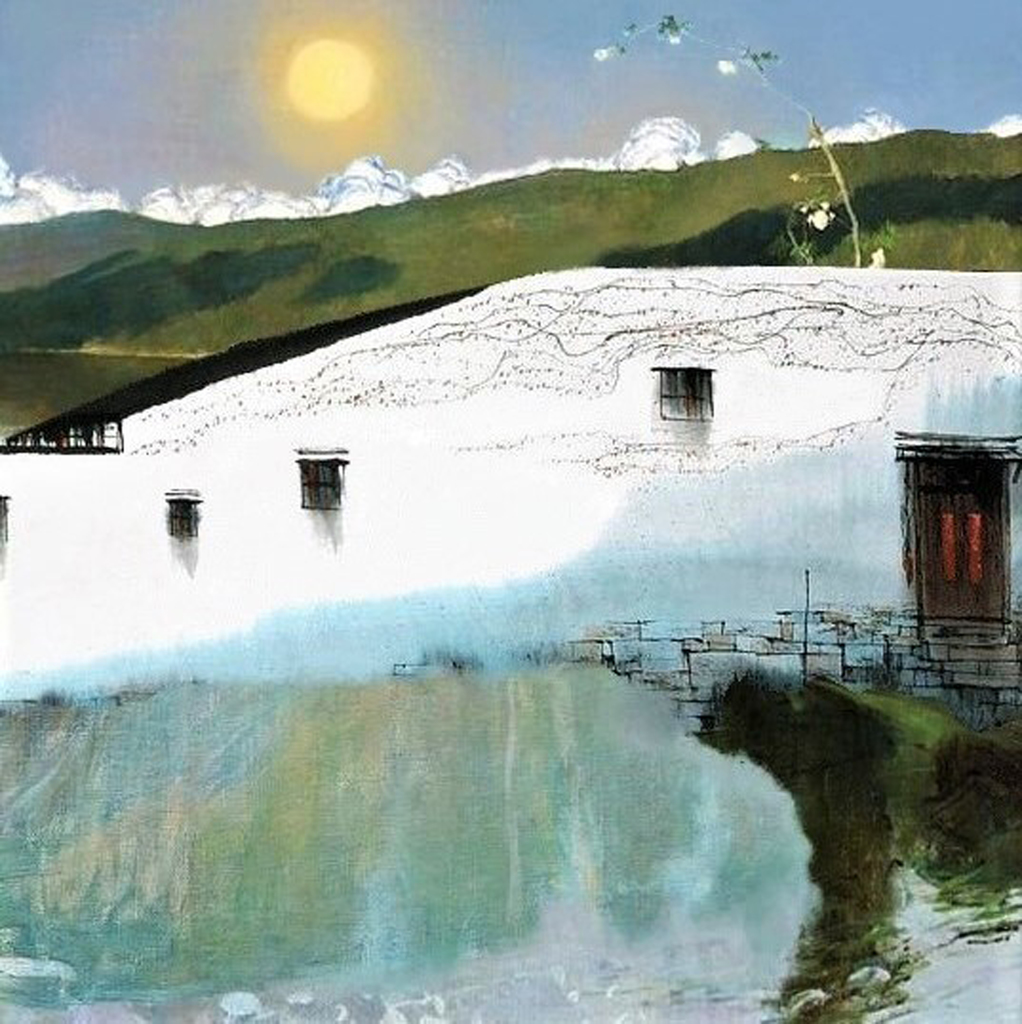 Landscape Sun on house #35 Acrylic and oily painting . Now at is painting in rent, and i can't selling and exhibition