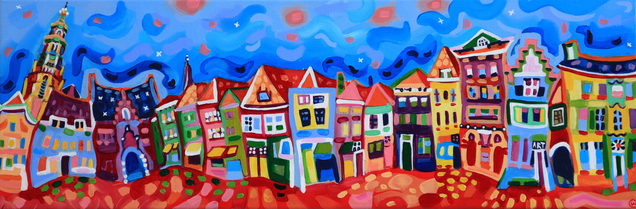 Wiet (Wieteke Hendrikx) laat zich leiden door kleur. De kleuren die zij ziet én de kleuren die zij wil zien. Zij schildert herkenbare stadstaferelen en natuurgezichten.