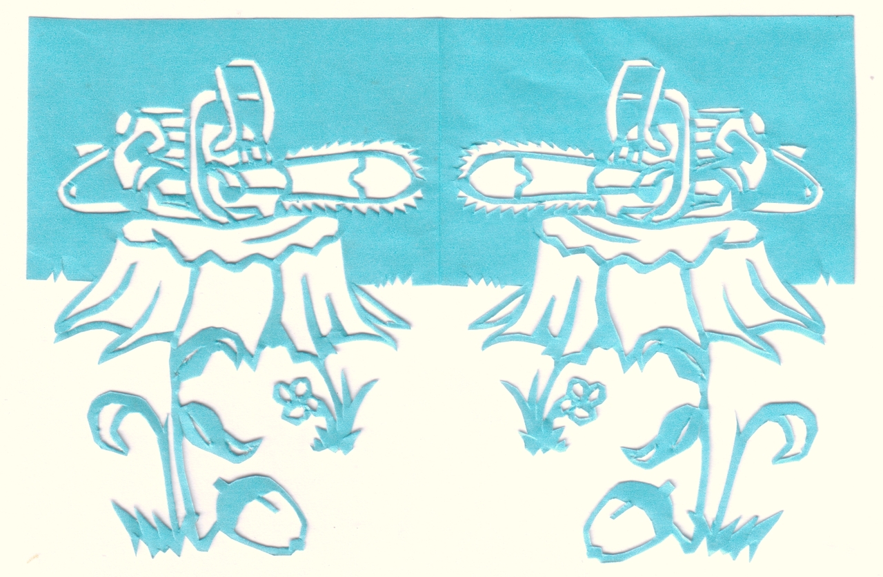 Kettingzaag Husqvarna Productiebos Knipwerk Knipkunst Paper Cutout Decoupage Scherenschnitt