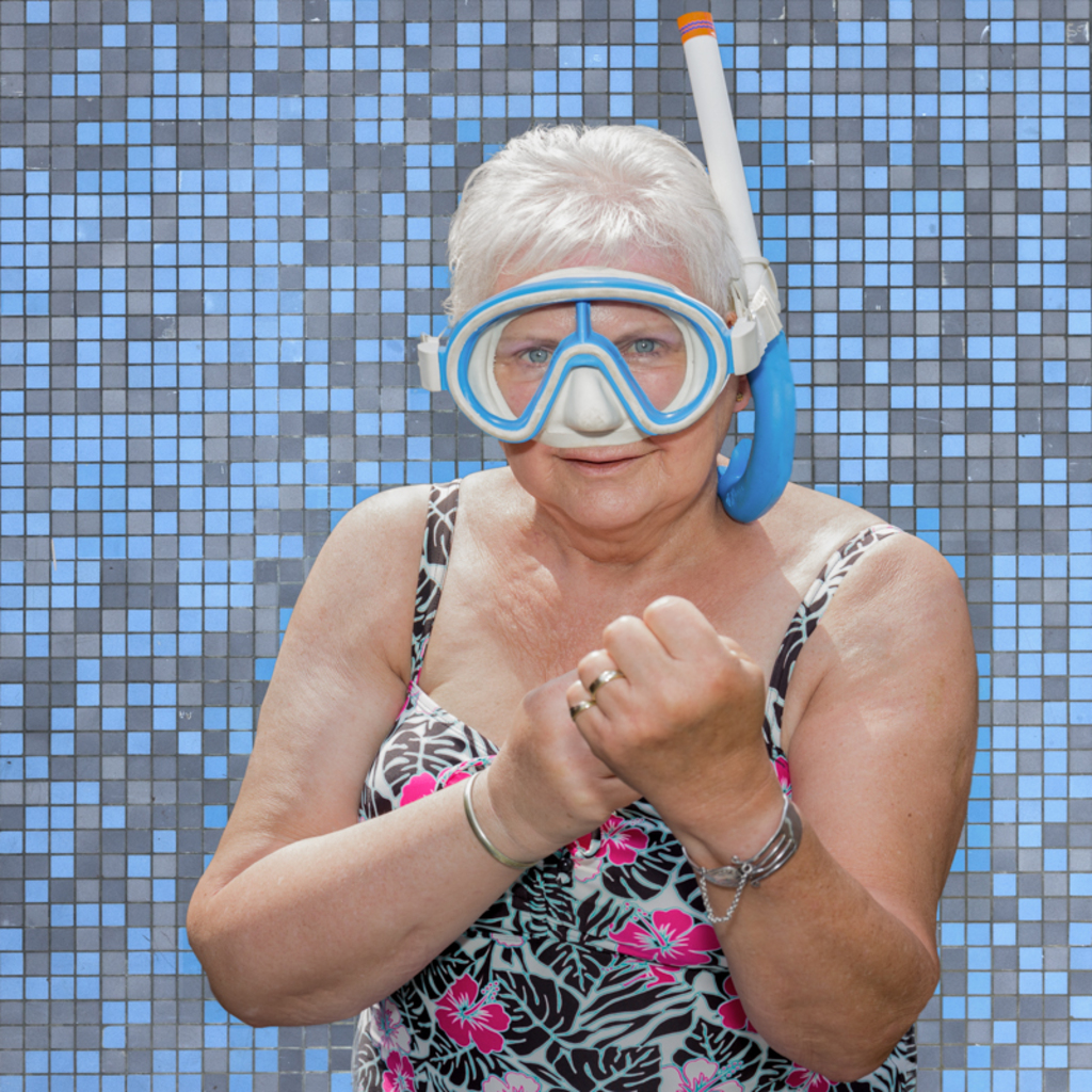 Kunstafdruk in passe-par-toute Het zwemmen is goed voor je humeur. Lekker gek doen met de meiden. Bekroond Kasteel Woerden 2018