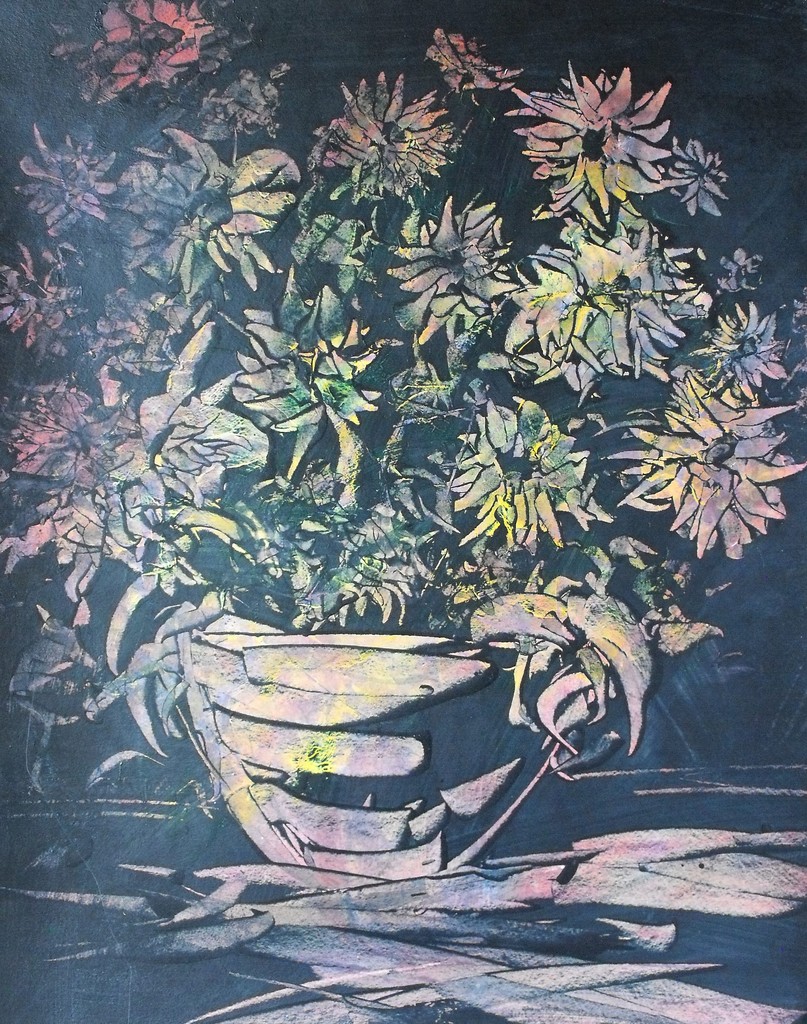 Papier verlijmd op multiplex.