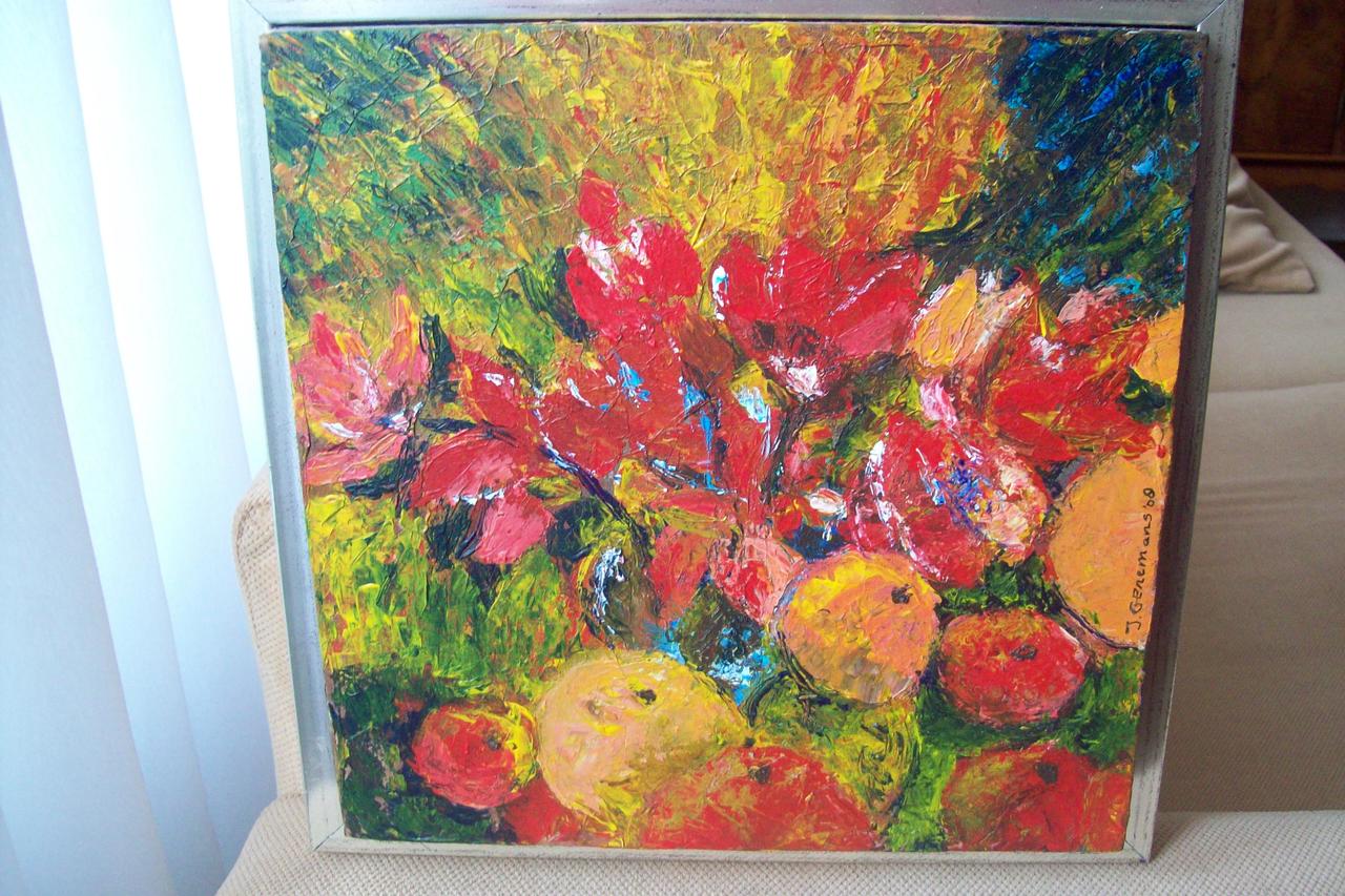 Gek op kleuren, het fleurt haar op, geeft haar energie en laat zien wie ze op dat moment is; hoe ze zich voelt. Kleuren mengen,geen probleem. Het is een proces dat voor haar altijd goed komt.