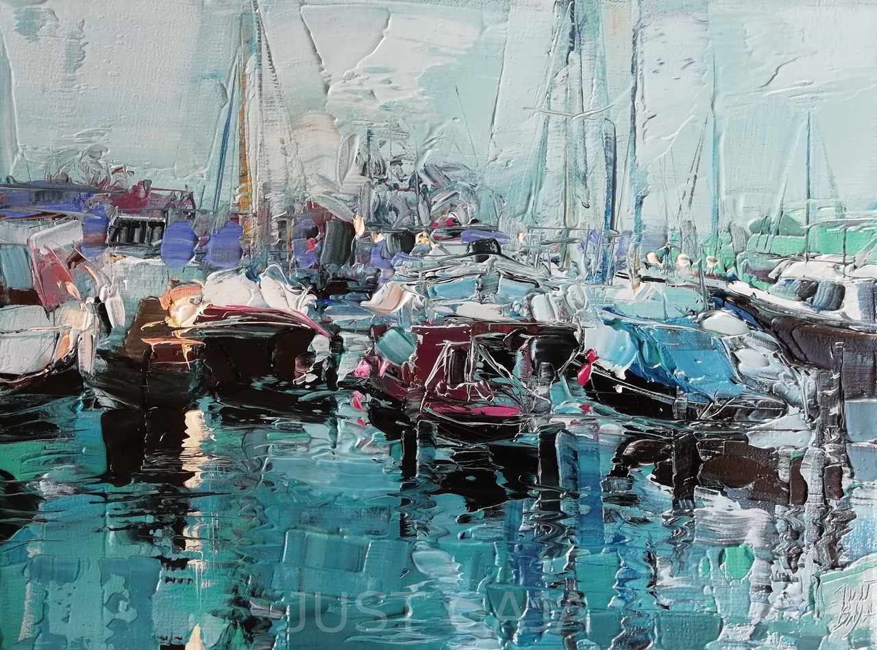 Oil Painting Harbor Haven Boot Jacht Nocturne Boats Yacht Impasto Dusk Allaprima Schemeruur