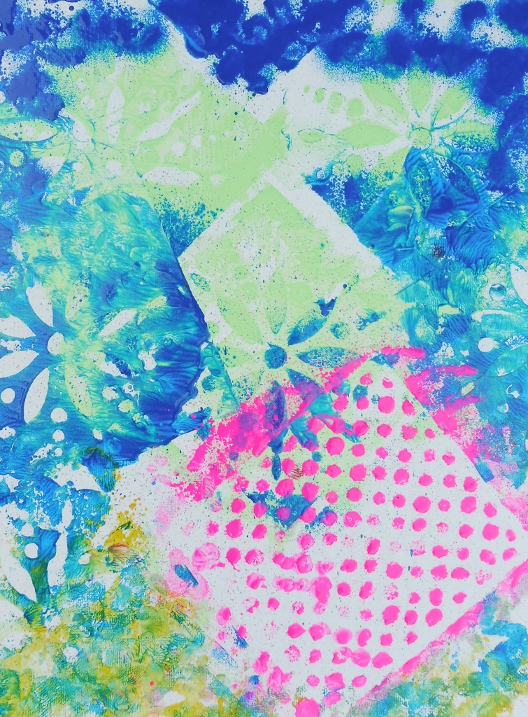 Dejeuner Herbe Blauw Geel Mintgroen Fuchsia Blue Yellow Mintgreen Experimental Experimenteel Printing Technique Druktechniek