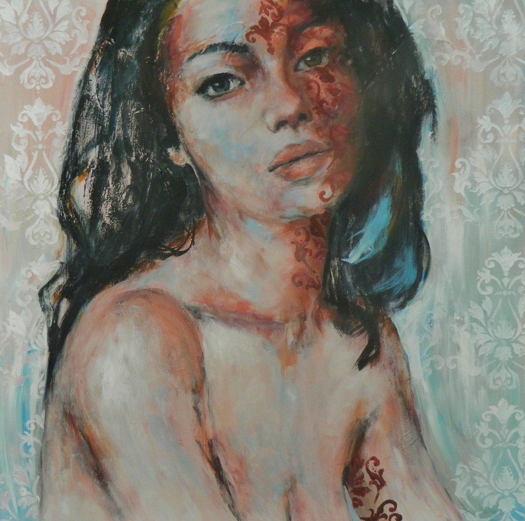 Schilderij Vrouw Portret Naakt Henna Sjabloon
