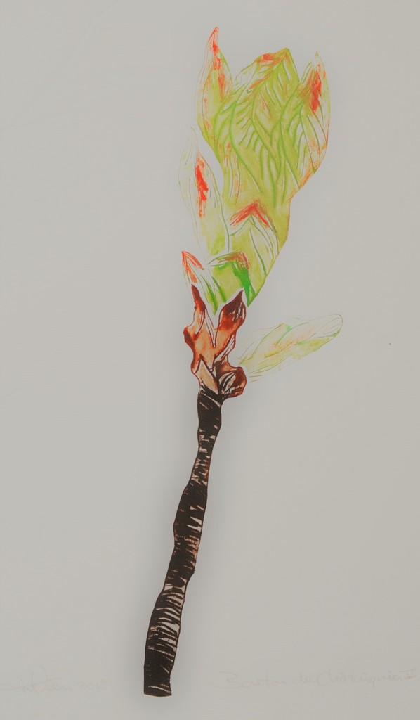 Kastanjeknop V - droge naald en aquatint - uitgezaagde zinkplaatjes - monotype - meerkleuren druk - oplage 1/1