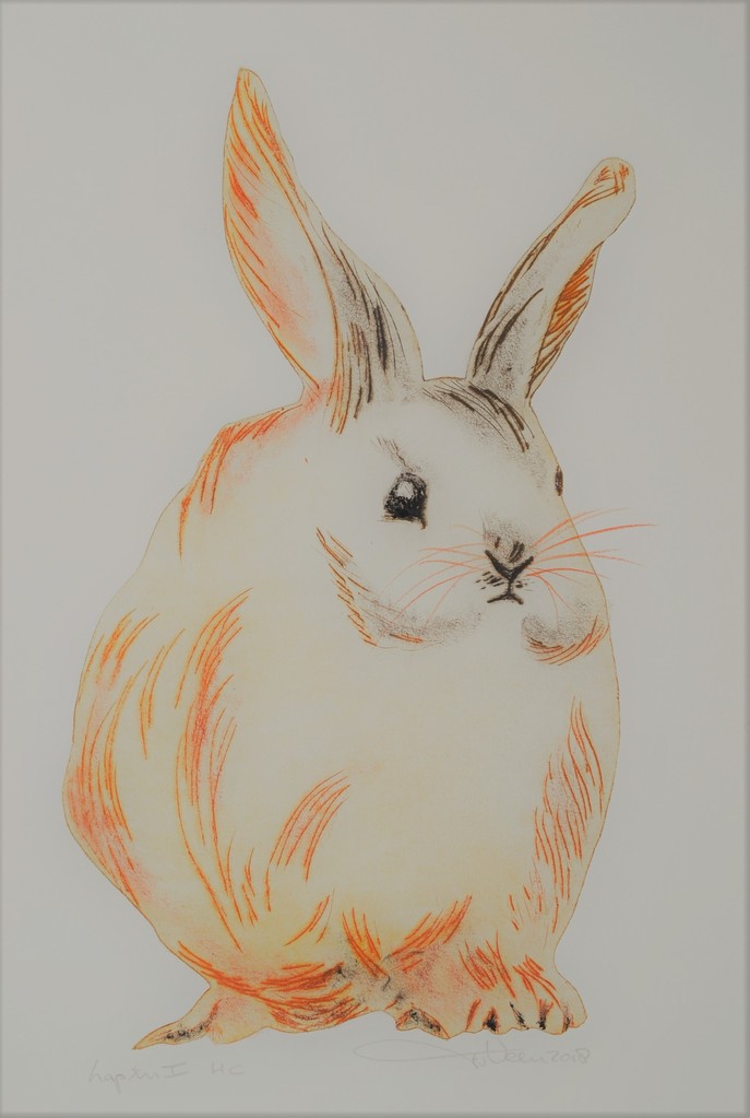 Konijn I - droge naald en aquatint - uitgezaagde zinkplaat - meerkleuren druk - oplage 1/10