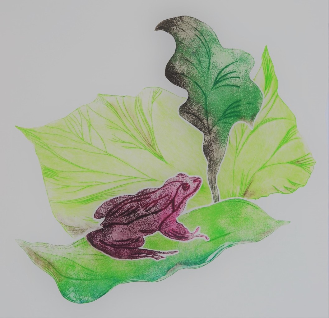 Pad V - droge naald en aquatint - uitgezaagde zinkplaatjes - monotype - meerkleuren druk - oplage 1/1