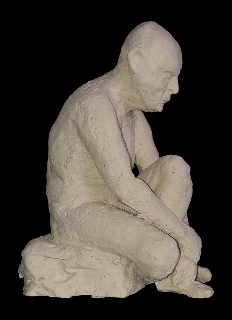 Ruwe, figuratieve schets in klei naar mannelijk model,