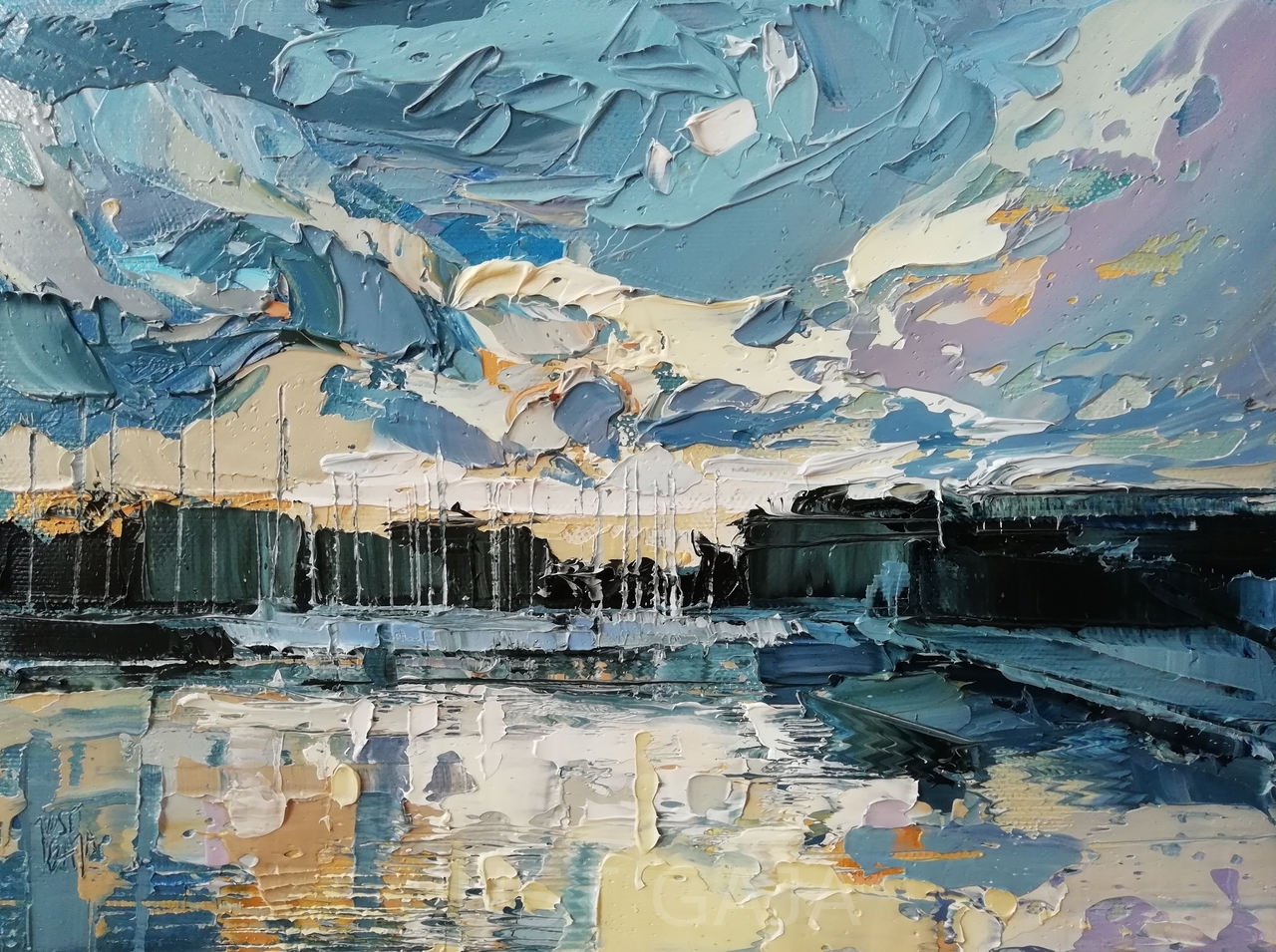 Justyna Gaja - kunstschilderes en Kunsthistorica(WO). Haar kunst is een persoonlijke mix tussen klassieke figuratieve en abstracte schilderijen. Zij schildert met schildermessen in alla prima en impasto techniek. Natuur is haar inspiratie. Zij ziet de wereld door lichten en kleuren. Zij maakt echter naast haar landschap en havengezichten ook bloemenstillevens, welke in de eerste plaats belangstelling voor intensieve en heldere kleur aan de dag leggen.