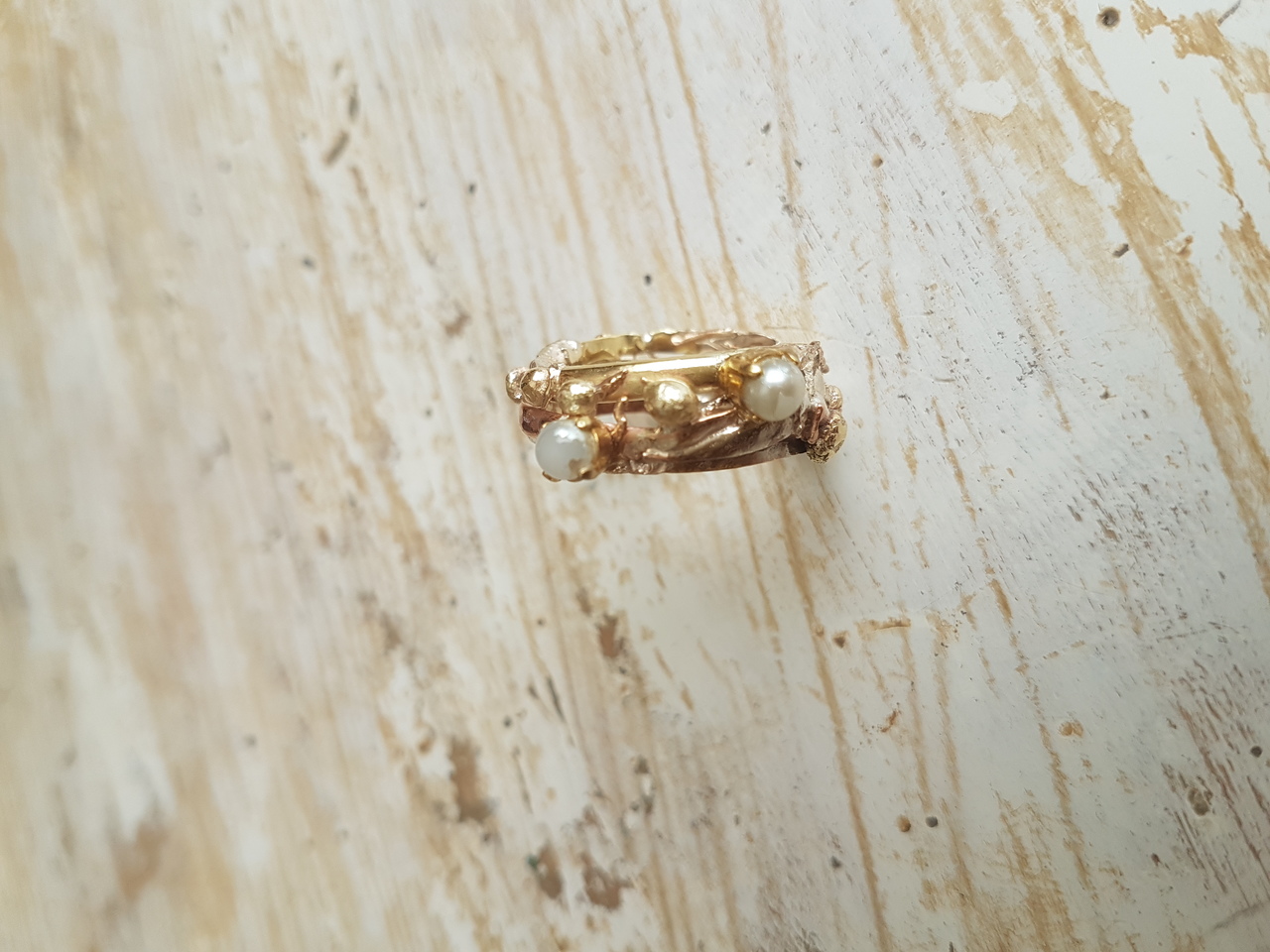 In opdracht van oude gouden sieraden (ringen, ketting en oorbellen) gemaakt