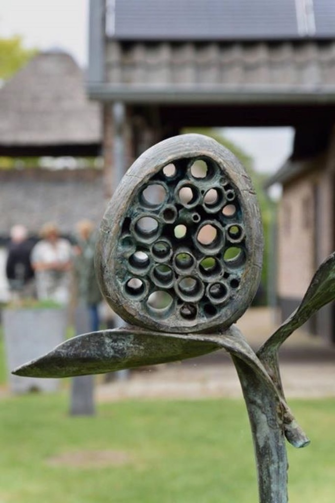 Bronzen bijenplant in gepatineerde cortenstalen pot. Geïnspireerd door de natuur en haar organische vormen. Cultivar bestaat uit bronzen plantensteel met daarop een bloeiwijze in Egg-vorm. Behoort tot de Bee-collectie.