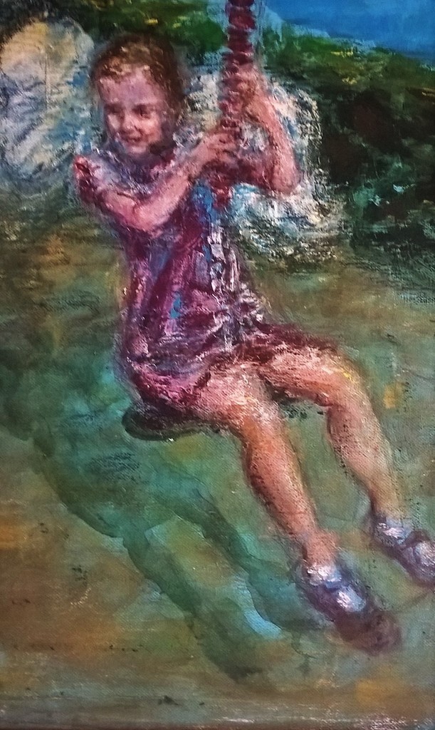 Lisa op schommel. Acryl op paneel