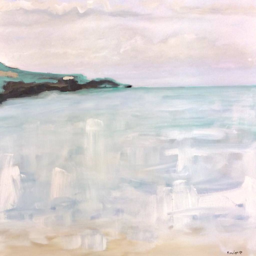 A Lovely painting with lots of movement in the forground. Very bold and beautiful brush strokes in both the sea and sky. I always try to add a modern twist to my paintings. In this painting there are three dashes of colour on the rocky shore which changes this seascape into something intreagingly modern but the essence remains very classical impressionism. The dashes lead the eye down the rocks ending in a small dash of black...which i love to incorperate in my paintings. The rest colours are very soft with warm pink underlayers on the horizon. Cool greys on the rocks, soft browns in the sand.