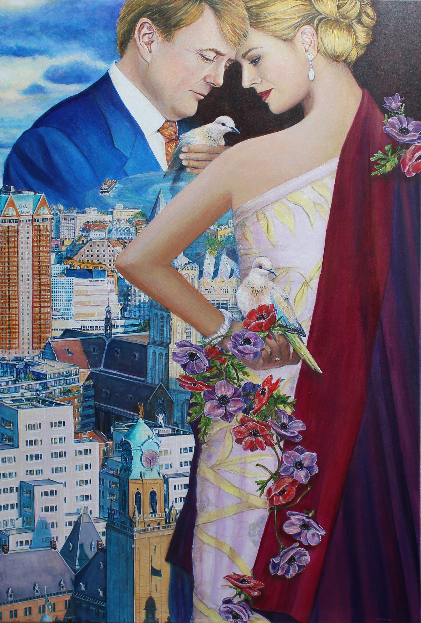Blauw Surreëel Koning Stad Vorst Mixmedia Lovebirds Artvolova Vorsten