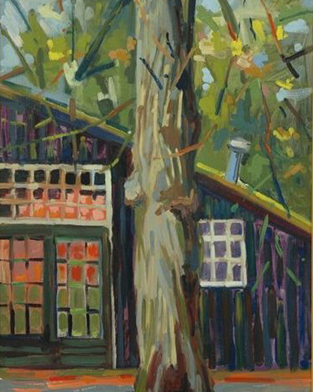 de zwarte schuur is een gewild schilderobject op het oude hof te bergen.' ik heb gezocht naar het contrast van de boom met de schuur daarachter.