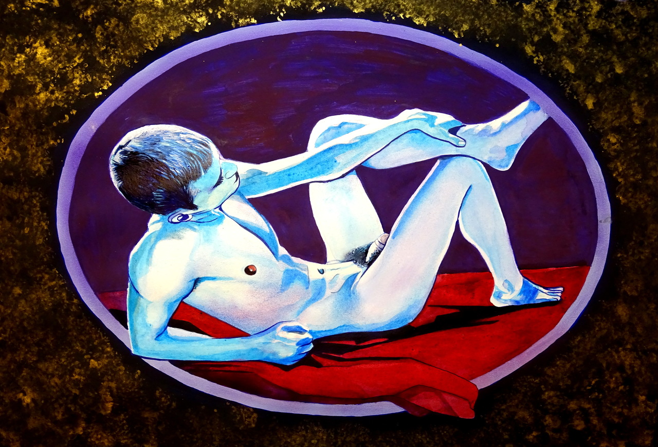 Figuratief Blauw Man Naakt Blue Model Nude Male Mixedmedia Bastiaanmol
