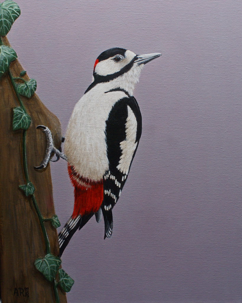 Schilderij Dieren Dierenschilderij Painting Birds Vogels Specht Bonte Acrylschilderij Vogelschilderij Woodpecker