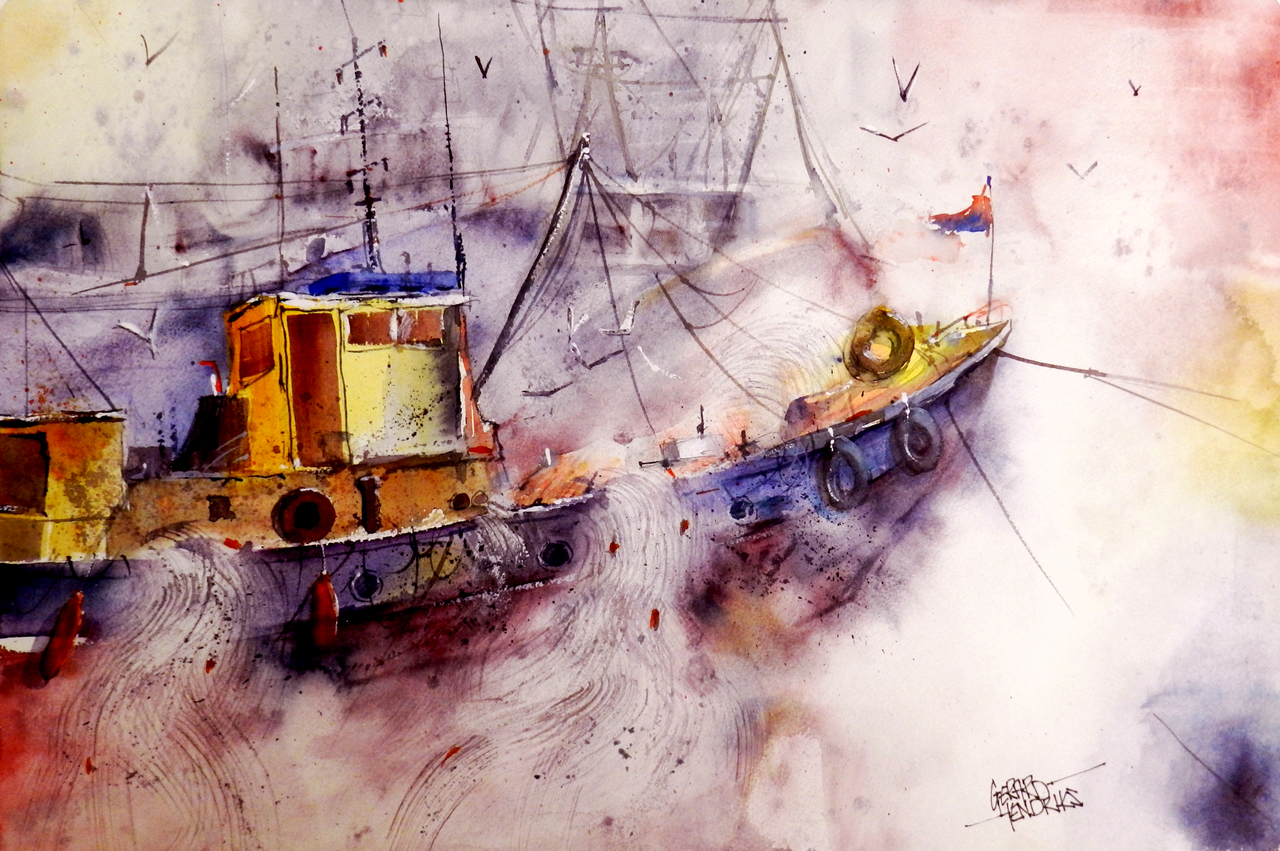 Zee Vissen Schip Vissersboot Sea Boat Netten Visnetten Fishing