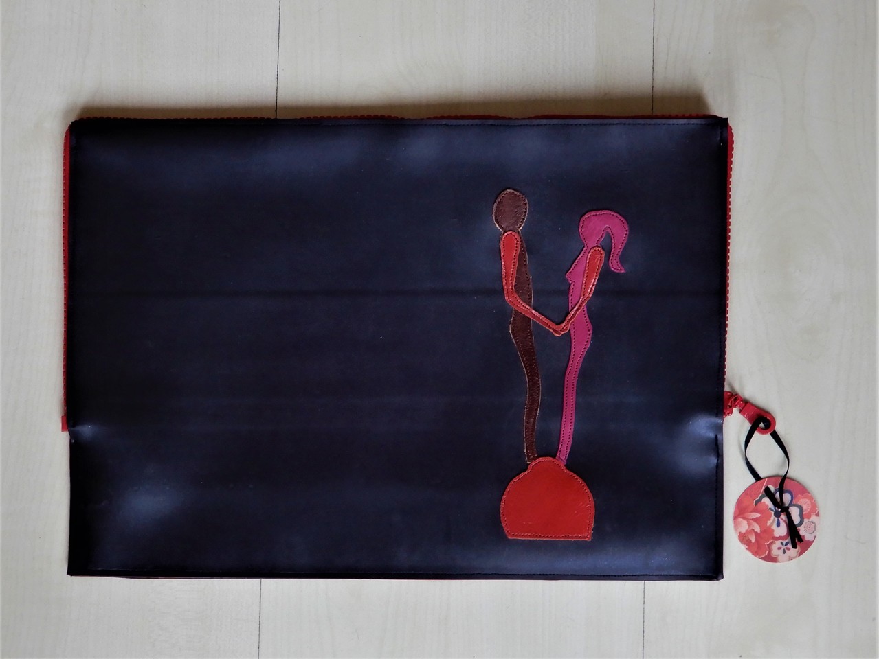 Laptophoes van vijverfolie met leren applicatie. 13.3 inch.