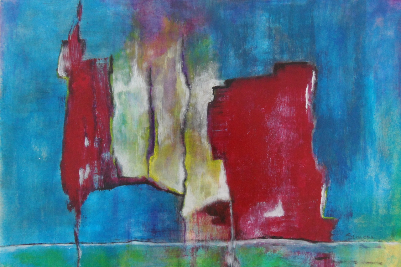 Het werk van Simone is kleurrijk en een combinatie van abstract en figuratief. Haar visie en inspiratie haalt ze uit de natuur die qua kleurstellingen veel te bieden heeft. Zoals de ondergaande zon de wereld betovert met de mooiste kleuren, die zij dan terug wilt zien op het doek. Een schilderij moet voor haar een sterke expressie hebben en die vindt ze in spetterende kleuren waarmee ze kan spelen. Met haar werk probeert ze een sfeer te creëren die haar gevoel weergeeft.