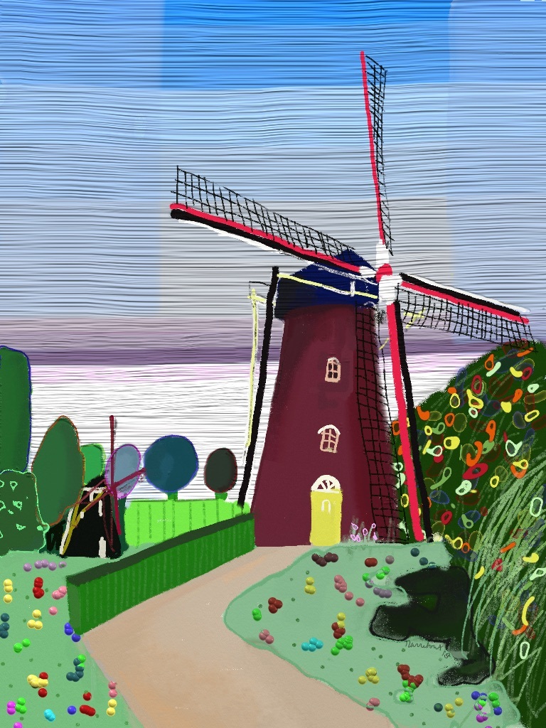 Kleurrijk Geabstraheerd Kunst Grafiek Zeeland Molen Ipad Hoedekenskerke