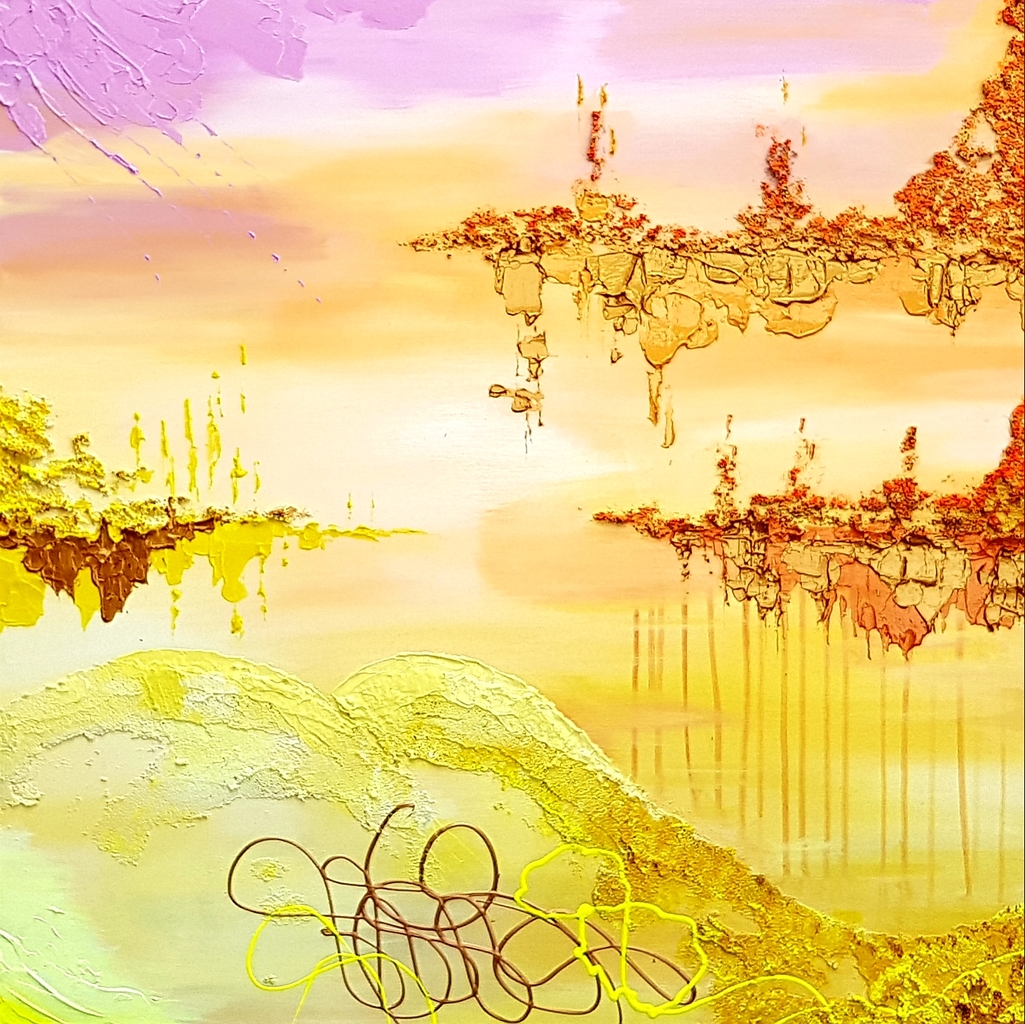 "Sunshine Baby" is een schilderij dat deel uitmaakt van een serie van 4. De inspiratie voor dit kunstwerk haalde ik uit de memorabele zomermaanden van 2018. De warmte, de zon, het gevoel, de totale sfeer en mijn persoonlijke ervaringen vormen de grondslag voor dit schilderij. Ik heb wederom gebruik gemaakt van structuurmaterialen.