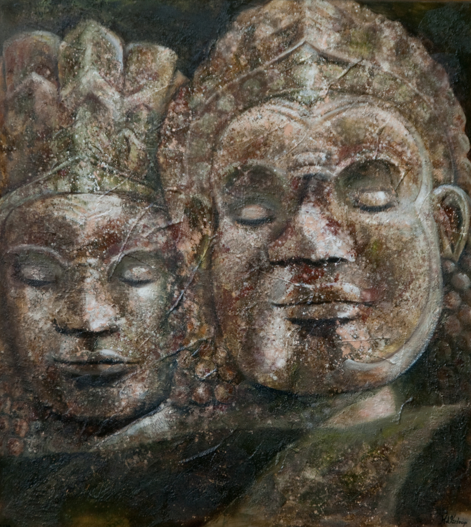 Geschilderd in Cambodja op lokatie (acryl). Thuis verder uitgewerkt in olieverf.