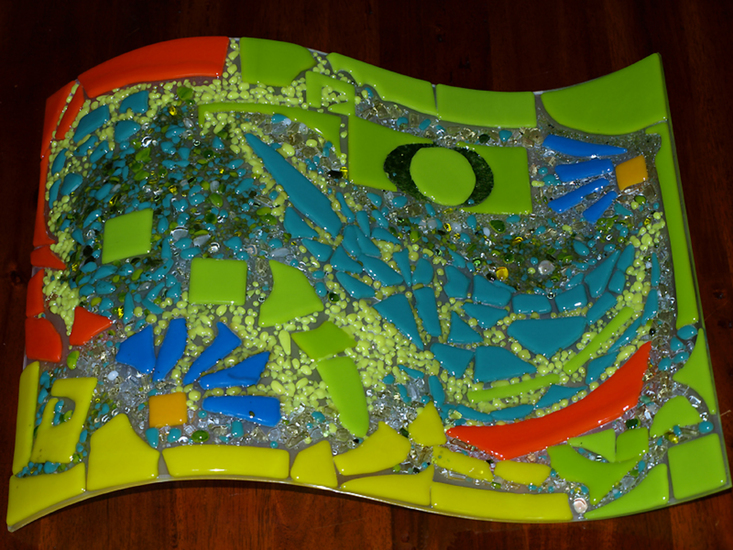 Schaal model golf glasfusion, mozaiek, intuïtief