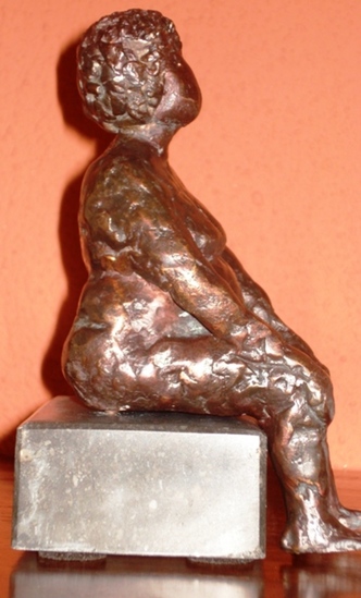 Rubens vrouw, Brons, naakt gepatineerd in warm bruintint op Belg. Hardstenen sokkel.