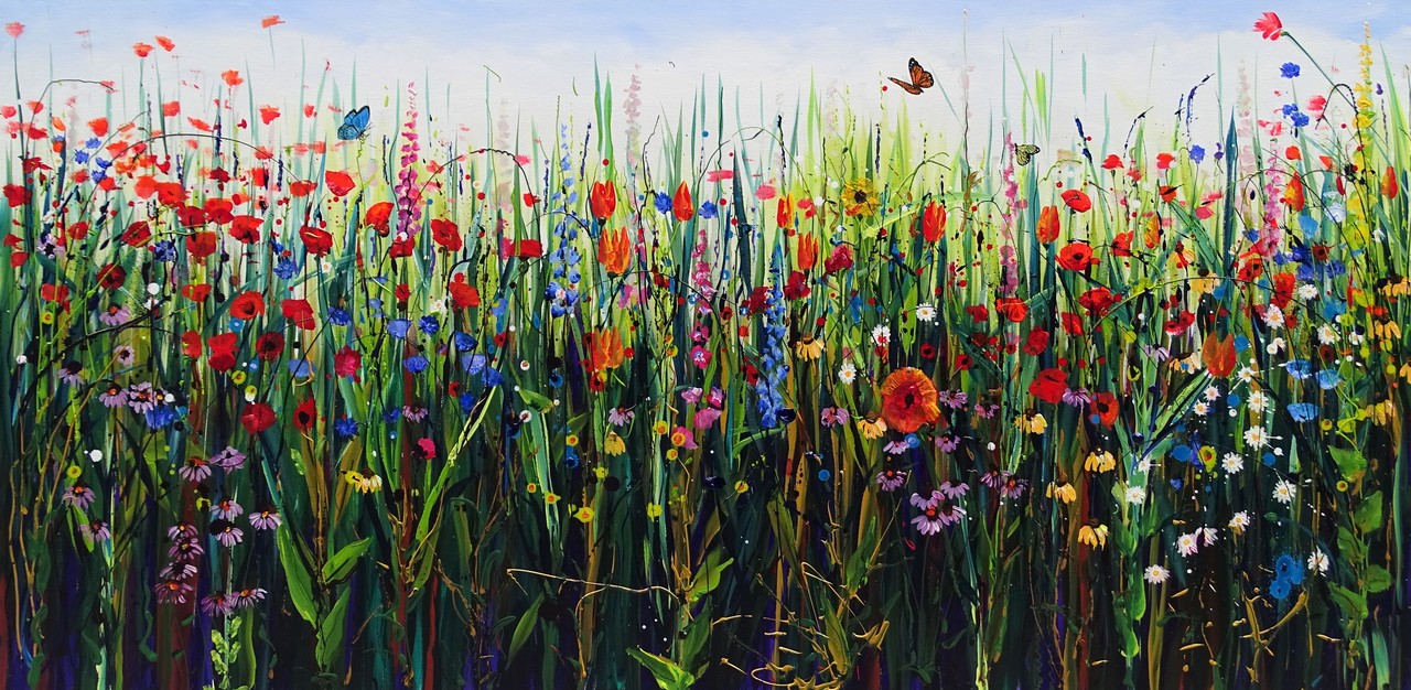 Uitbundig bloemenveld met wilde bloemsoorten. For sale at: https://www.kunsthandeldekker.nl/agenda