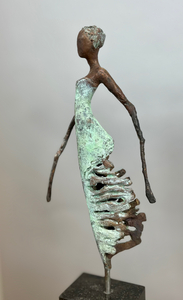De bronzen beelden van Loes Knoben (1956) laten expressie, beweging en spanning zien. Loes' werk weerspiegelt haar kijk op het leven en toont haar talent om mensen te doorgronden. Deze sterk ontwikkelde intuïtie is terug te vinden in haar beelden. In haar werk zijn natuurlijke materialen het uitgangspunt. Altijd is ze op zoek naar hout, takken en schors, verweerd door weer en wind. Hierin zoekt ze naar kracht, ritme en evenwicht. Van hieruit vertrekkend ontstaan als een ontdekkingstocht haar beelden. U bent van harte welkom om mijn beelden te komen bekijken. Telefoonnummer: 06-23644892. Lid van BOK (Beroeps Organisatie Kunstenaars)