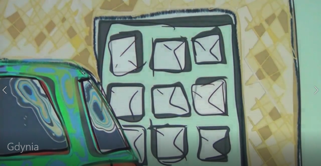 Van Gdansk naar Gdynia: Ipad tekening van een straatbeeld ergens op de route tussen Gdansk en Gdynia in Polen